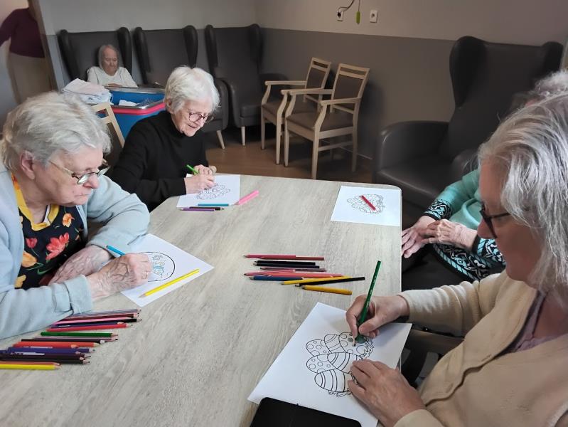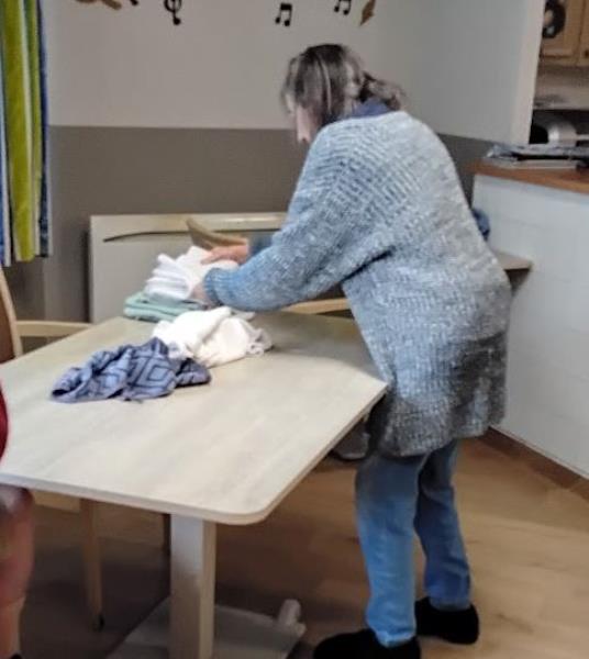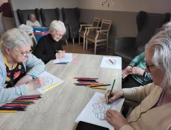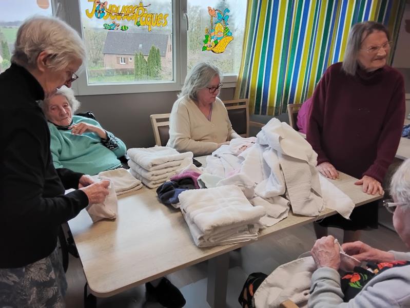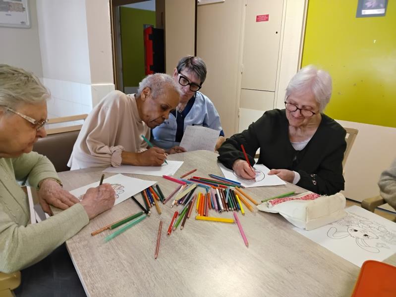 Différents supports sont proposés aux résidents comme le pliage de linge, un atelier de réminiscence rappelant les activités de la vie quotidienne ou encore l'activité art thérapie qui renforce l'estime de soi et travaille la motricité fine.