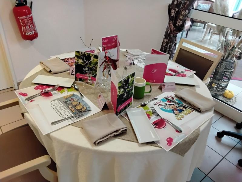 Pour plonger dans l'ambiance, la table était décorée avec des sets de table humoristiques, à l'image de cette fête traditionnelle française