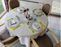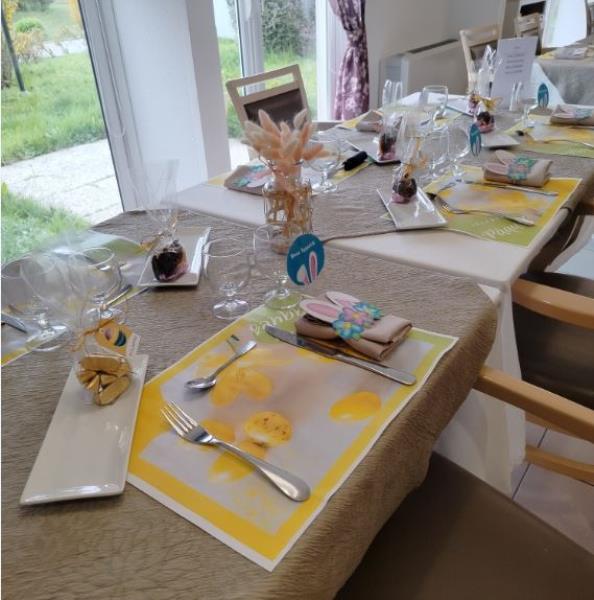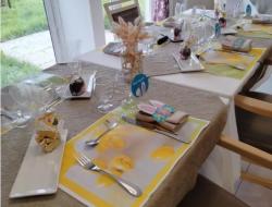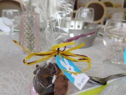 Sur une belle table décorée, les chocolats étaient prêts à être dégustés, en accompagnement du repas de fête maison préparé par l'équipe de cuisine.