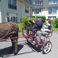 Publiée le 19/06/2019Chaque mois, la séance de médiation animale est particulièrement appréciée par les résidents de la Fontaine Médicis de Vaux Andigny. Ce mois-ci, l'après-midi était un peu différent, puisque ce n'est pas Gaïa l'ânesse qui nous a rendu visite mais son grand frère [...] Lire la suite