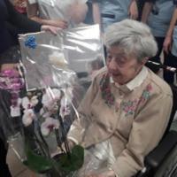 Publiée le 14/01/2019Notre doyenne a fêté ses 104 ans en chansons avec la chorale de Seboncourt. Elle est arrivée à la résidence en 2005 et on a l'impression que le temps n'a pas de prise sur elle. Elle se déplace seule avec son fauteuil roulant et lit encore sans lunettes ! Pour cette occasion Madame Le M [...] Lire la suite